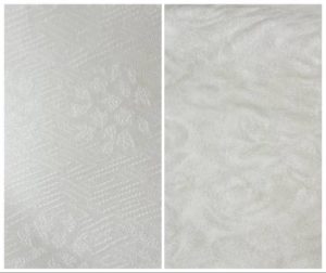 正絹の生地は、地模様が薔薇の花のようなものと、サヤ型の生地のものと合計2種類作り、サヤ型の方は一緒に横浜に行く母用に。