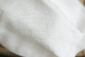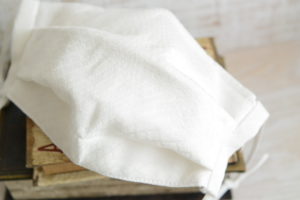 今までずっと、販売させていただいてきたのはプリーツ型のもの。あごの部分の内側に透明の平ゴムを縫い付けて顔にフィットするようにつくってきました。表生地は麻や刺繍の生地など。