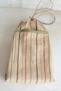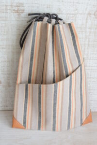 市販の信玄袋って、外側にポケットが見られなかったので、ちょっと外にポケットがあると便利かなと思って、外ポケットをデザインしました。
